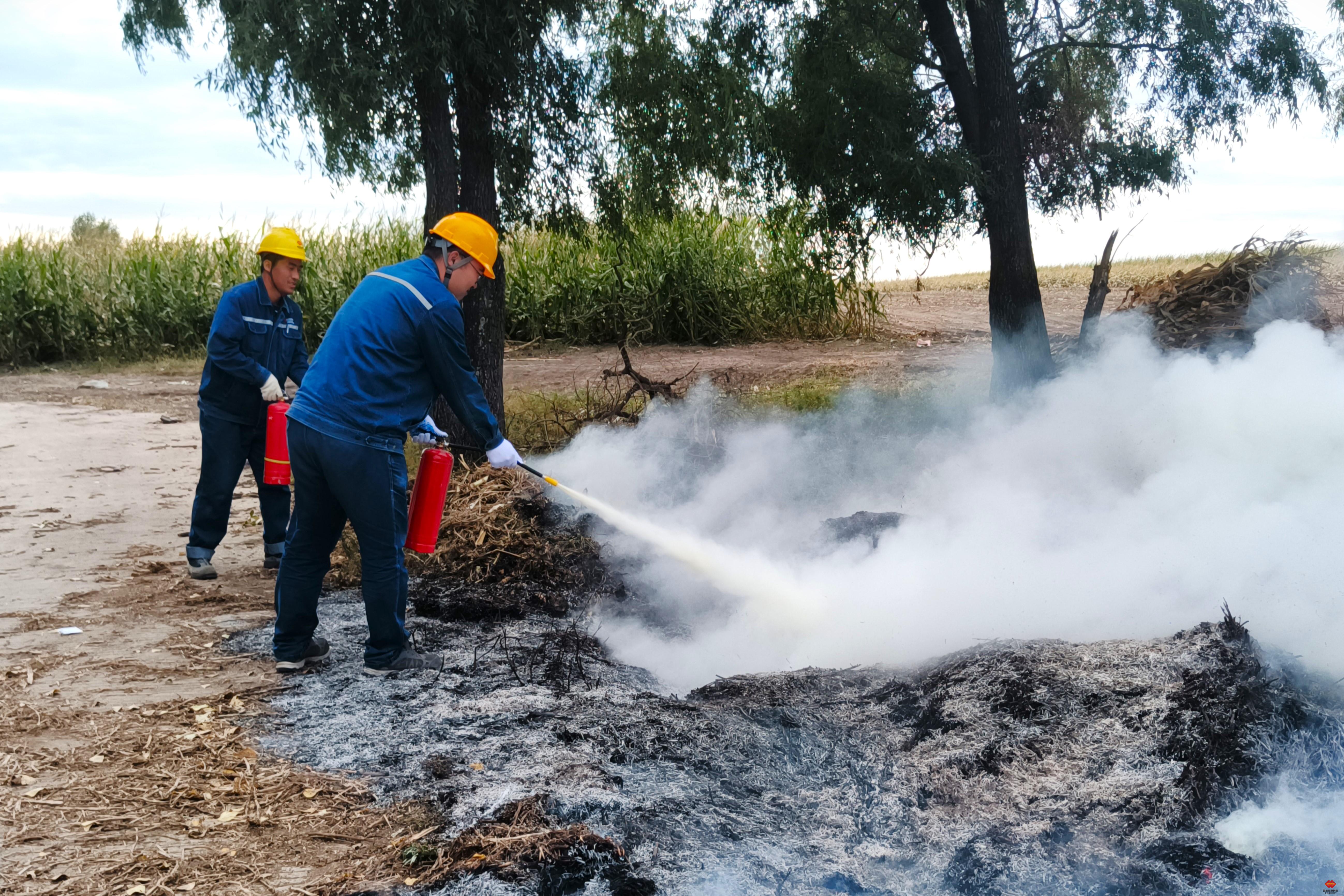 當日15時許,該公司風電場運檢人員發現升壓站附近濃煙滾滾,火勢在大風的助推動下已經蔓延至相鄰秸稈垛、周邊樹木和未收割的莊稼,情況萬分緊急。風電場迅速啟動火災應急預案,向當地消防部門報警,同時組織職工攜帶滅火器、滅火風機等設備奔赴火災現場進行救援,設置防火隔離帶防止火勢繼續蔓延,救援人員克服高溫與濃煙分區域協同滅火,經過近一小時的撲救,現場明火全部撲滅。