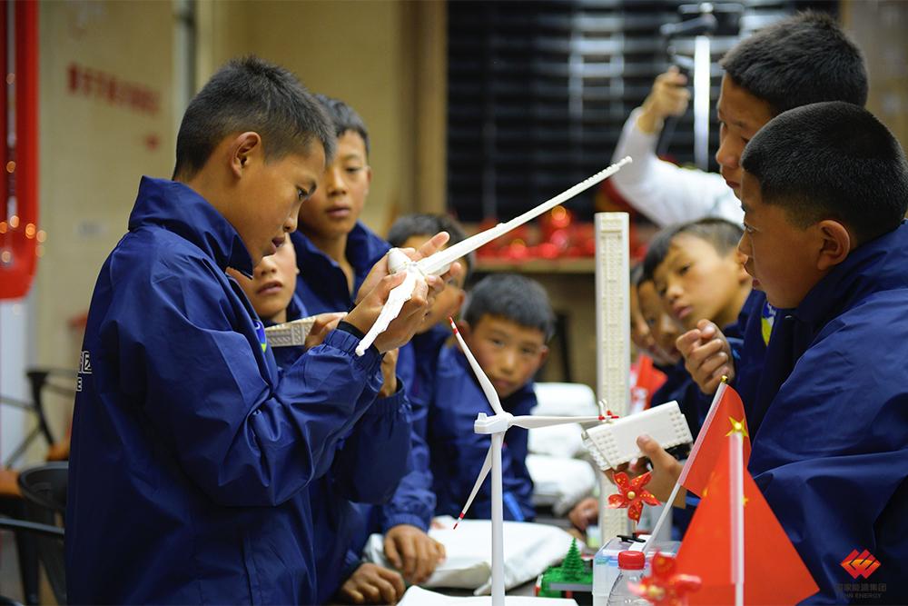 活動上,師生們參觀了科環(huán)集團智慧展廳,圍繞“無廢城市”“生活中的污染源”“了不起的鍋爐黑科技”“腦洞大開的新型材料”等主題開展了參觀講解;展廳參觀結(jié)束后,來自科環(huán)集團的講解老師在課堂上為師生們講授相關(guān)能源知識,志愿者講師們用兩節(jié)生動的互動教學(xué)方式,開展了《微風(fēng)也有大能量》、新型污染源的《看不見的微塑料》等有關(guān)清潔能源的探討科技環(huán)保內(nèi)容,為孩子們心中播下綠色科技與環(huán)保夢想的種子,課堂氛圍熱烈有趣,極大地激發(fā)了學(xué)生們的學(xué)習(xí)熱情?;顒又?,學(xué)生們還用畫筆畫出自己心中的“綠水青山”。營員久美多杰驕傲地說:“我在家鄉(xiāng)也看到了高大的風(fēng)力發(fā)電機,今天聽了介紹,才了解到它的工作原理,真的太有意思了!”帶隊老師杜老師也感慨到,“孩子們能到這里對能源知識有所了解,確實機會十分難得,打開了新的視野。能夠讓孩子們在生活中更加關(guān)注清潔能源,加強環(huán)保意識。”
